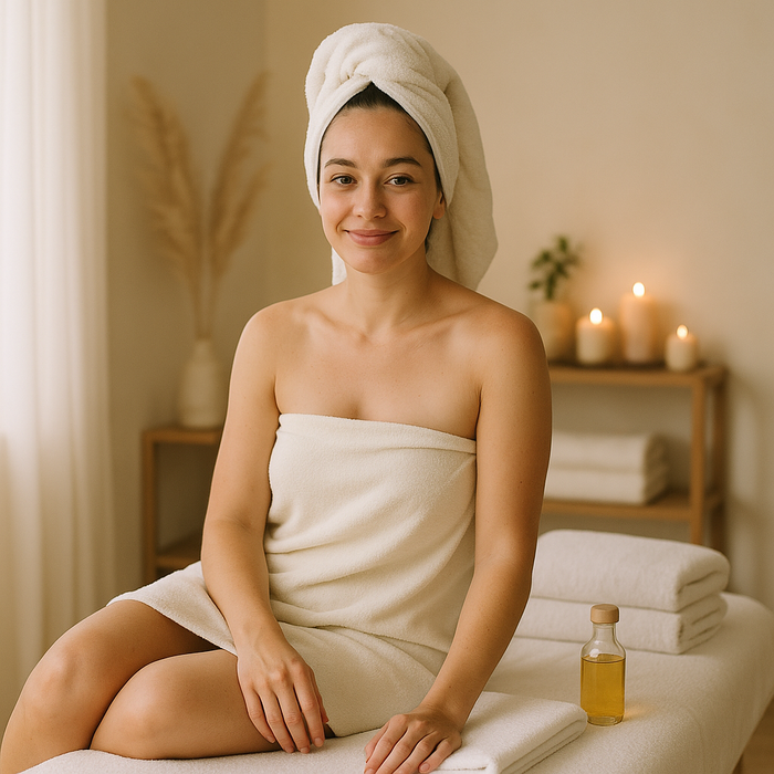 U kunt na het douchen een handdoek om houden. Onze masseur neemt handdoeken en olie mee.